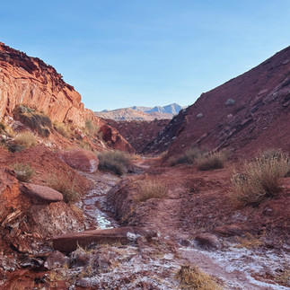It felt like I had paid for an offroad sightseeing tour from the comfort of our truck. Ben drove like a pro, and despite a few doubts that we would ever make it, and the few signs that always told us we had farther to go than we thought, we got to Little Finland right at golden hour. The red rock landscape showed off a wild variety of otherworldly wind-carved shapes. And out of nowhere, water. Not much, but enough of a steady trickle to grow a handful of big, vibrant palm trees. We walked up the canyon on red dirt, frosted white with mineral deposits, and climbed up rocks to take in the solitude and miles of views.